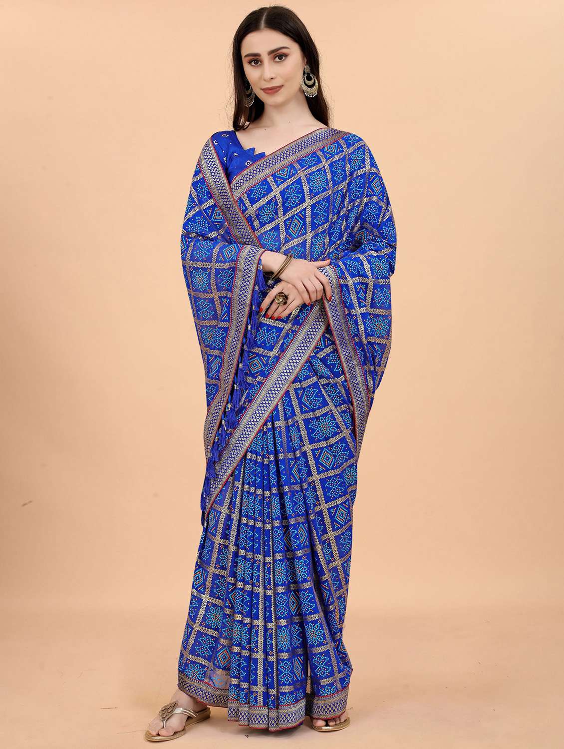 - » women's bandhani blue colored saree with blouse