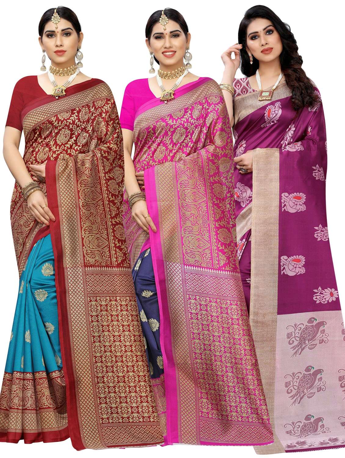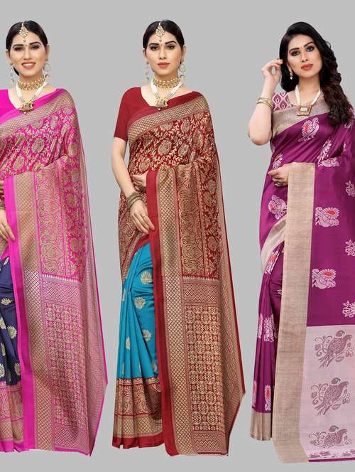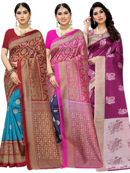 - » pack of 3 multi colored combos saree