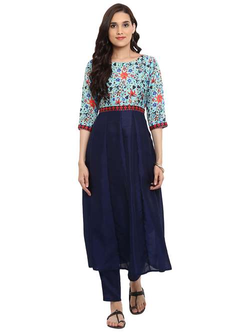 printed kalidaar kurta with pant set - 15737622 - Very Small Image - 1