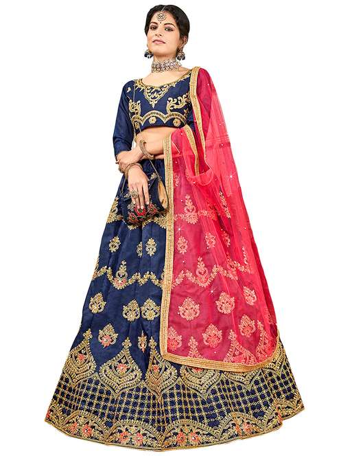 embroidered a-line semi-stitched lehenga - 17380068 - Very Small Image - 1