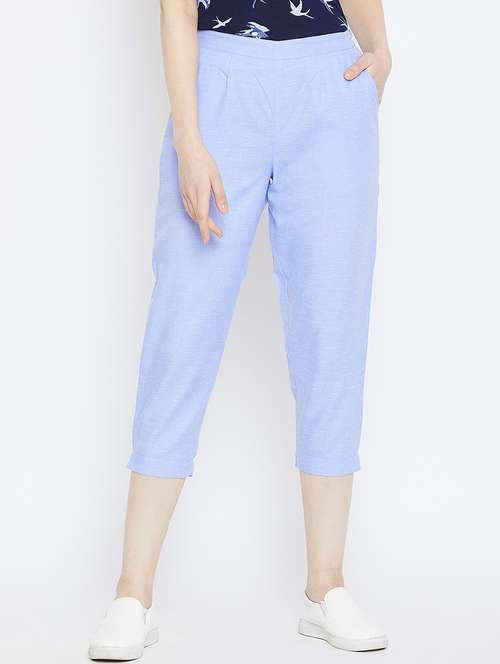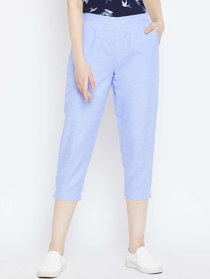 women light blue solids calf length trousers - 16047028 - Very Small Image - 1