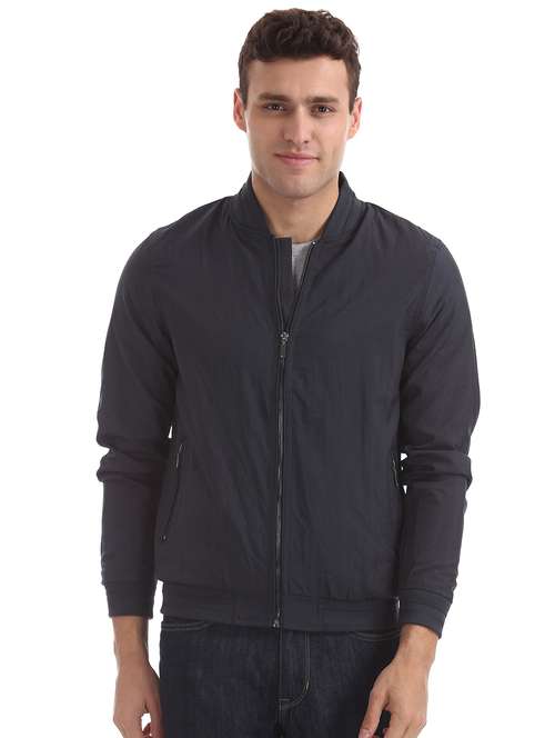 - » navy blue solid bomber jacket