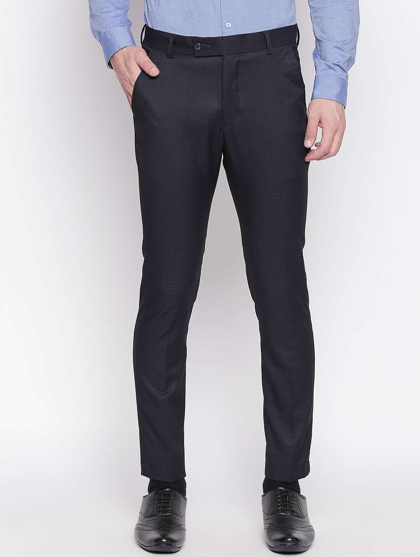 - » navy blue checkered flat front formal trouser