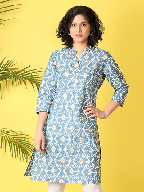 women blue cotton straight kurta - 21292276 -  Standard Image - 1 women blue cotton straight kurta - 21292276 -  Zoom Image - 1