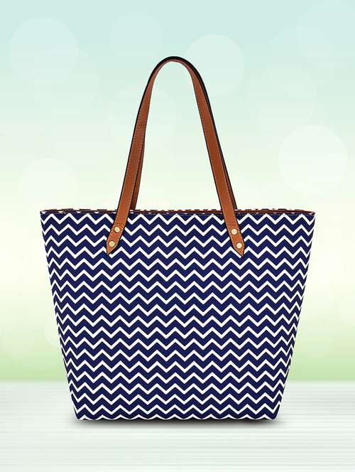 - Expand your bag collection with blue shades of totes handcrafted with unique designs having spacious structure to fit in all your essentials.