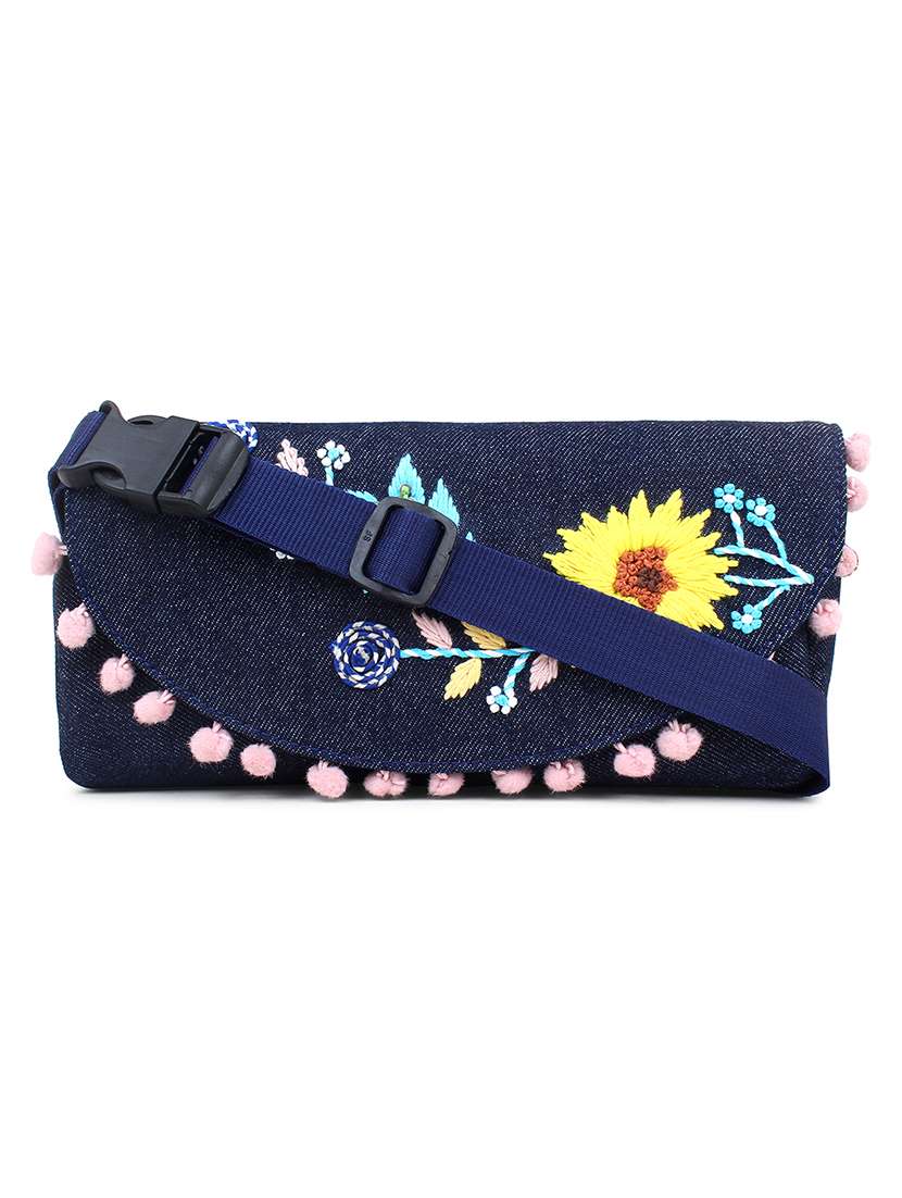 - » blue embroidered sling bag