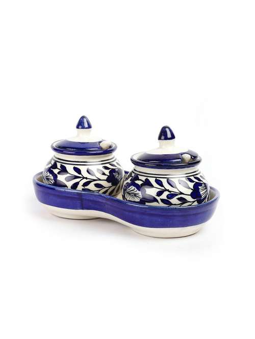 - » blue ceramic pickle duo jars set
