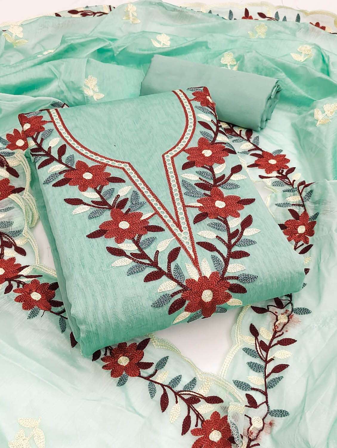women embroidered unstitched suit set