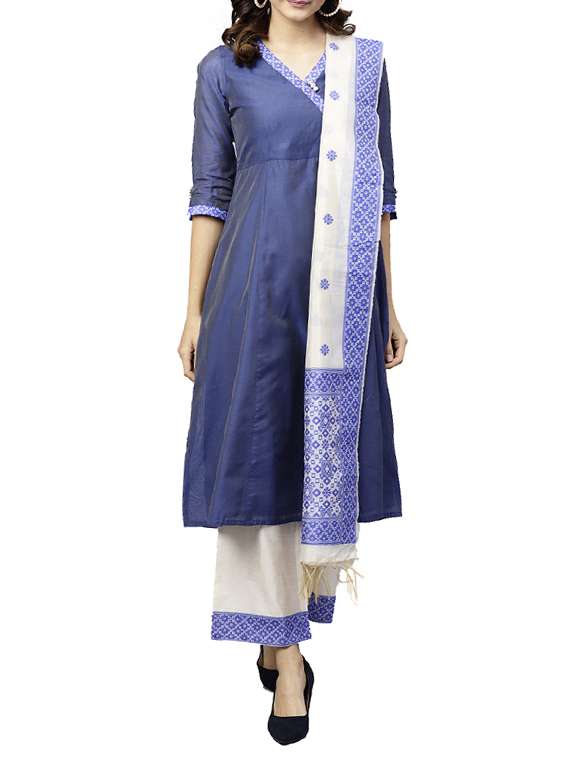 - » solid a-line chanderi stitched pant suit
