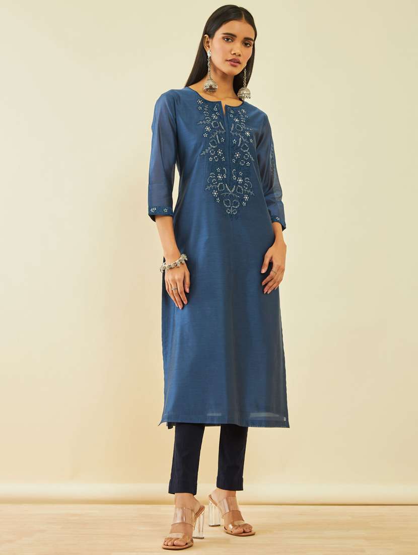 - » teal embroidered straight kurta