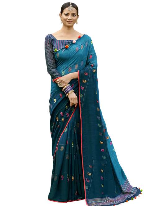 - » blue chanderi printed saree