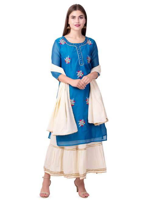 embroidered kurta sharara with dupatta set - 16509729 - Very Small Image - 1