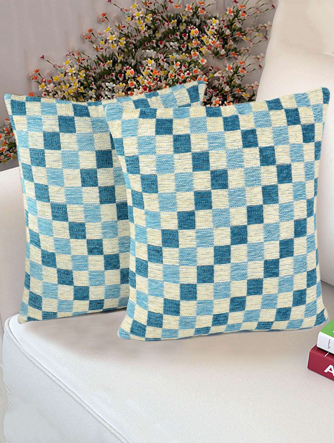 Saral home soft micro chenille cushion cover set of two pieces with zip. Size of cushion cover 40x40 cm.