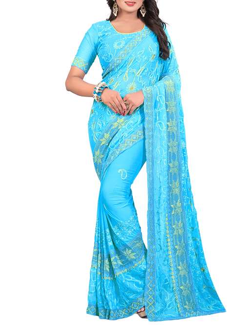 - » thread embroidered sky blue saree with blouse