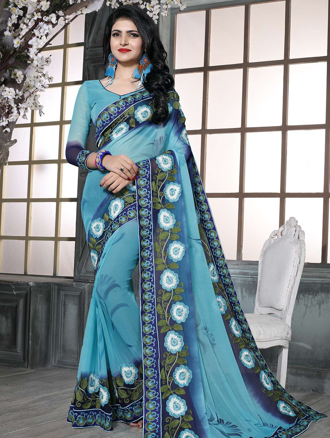 - » floral embroidered saree with blouse