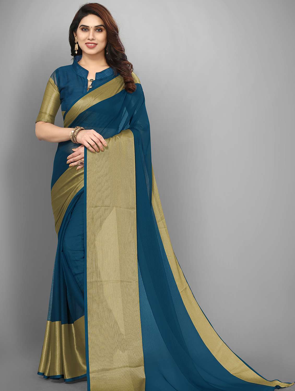 women's bordered royal blue colored saree - 20308405 - Very Small Image - 1