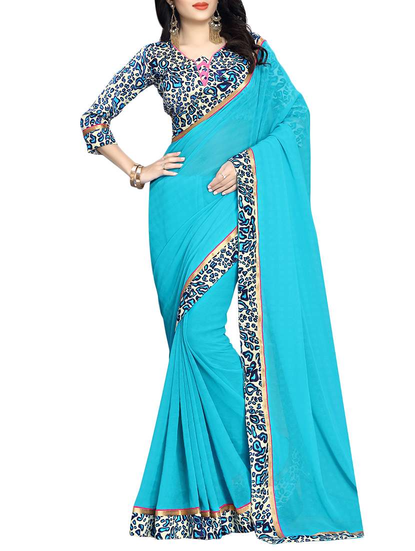 - » sea blue bordered saree with blouse