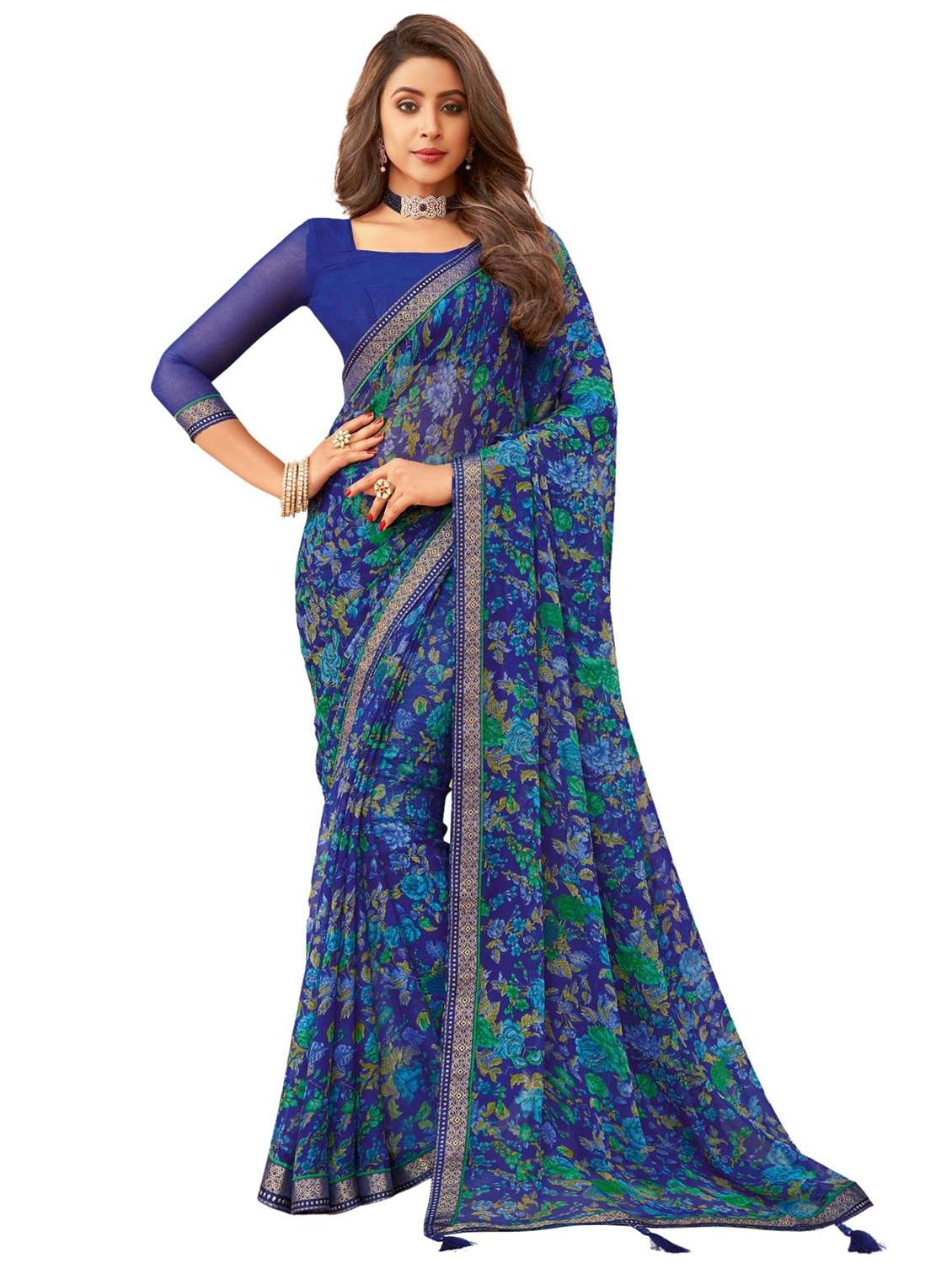 floral print chiffon saree with blouse