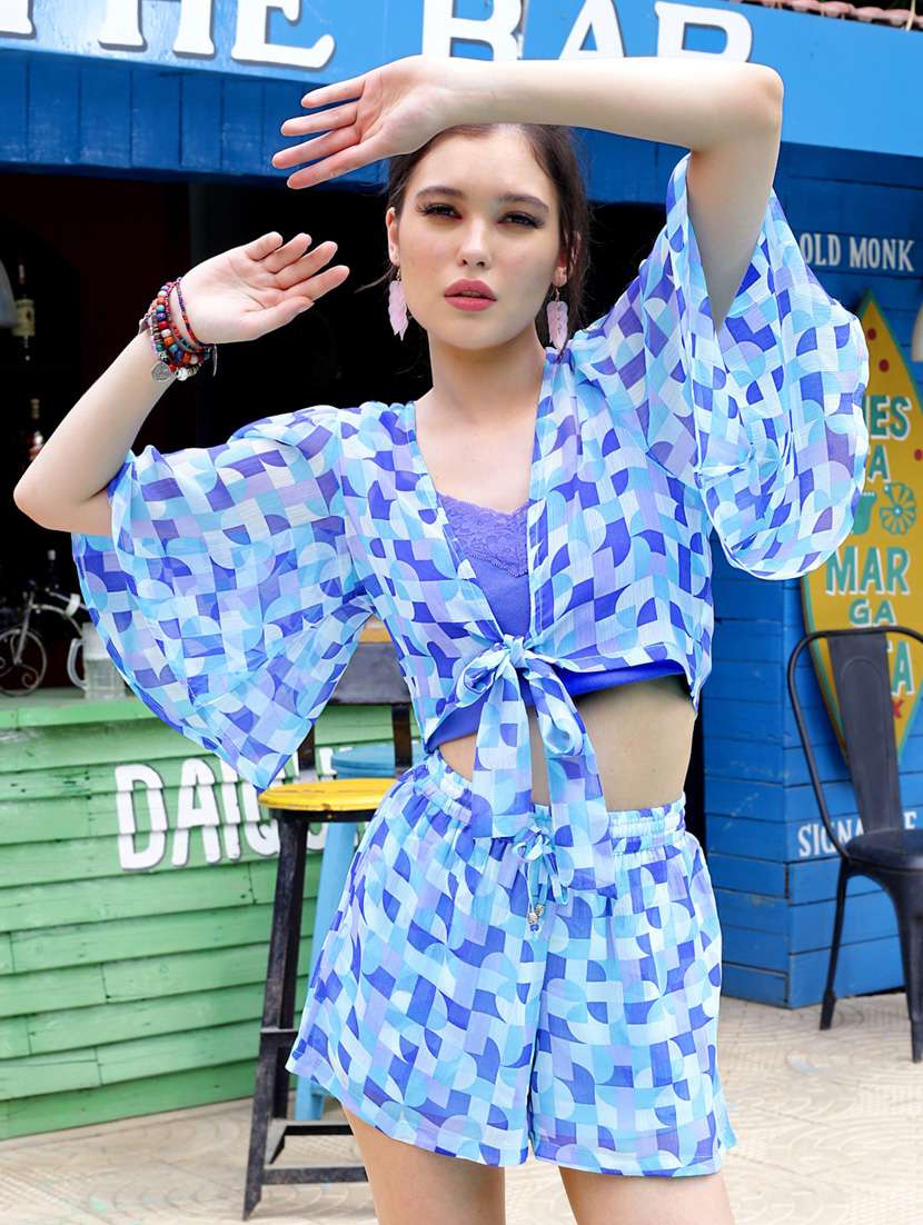 blue printed regular shrug - 19971309 - Very Small Image - 1