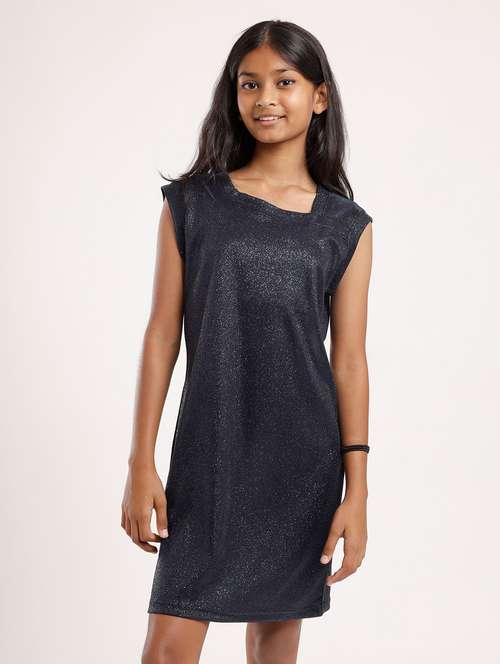 Let your little star shine bright in the Chilins Sparkle Ruffle Sleeve Dress. Designed for girls, this slim-fit silhouette features a high neckline and playful ruffled sleeves that add a touch of elegance and charm. The shimmering silver fabric, crafted from a soft polyester blend, catches the light beautifully—perfect for celebrations and camera moments.