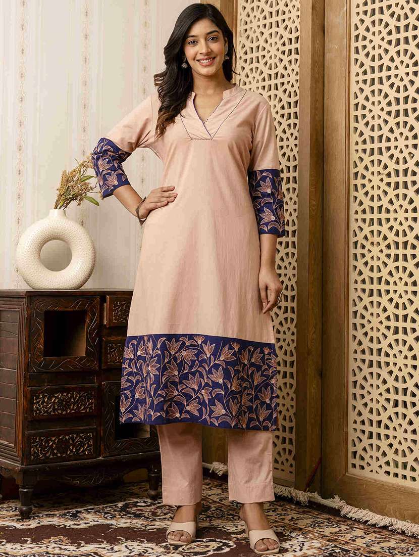women embroidered three quarter sleeves kurta pant set