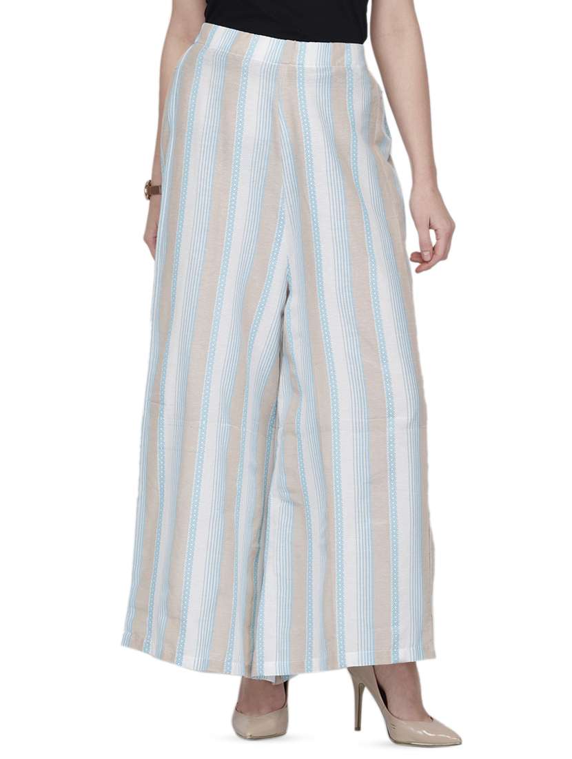 Aarsha Blue Beige Stripes Cotton Palazzo