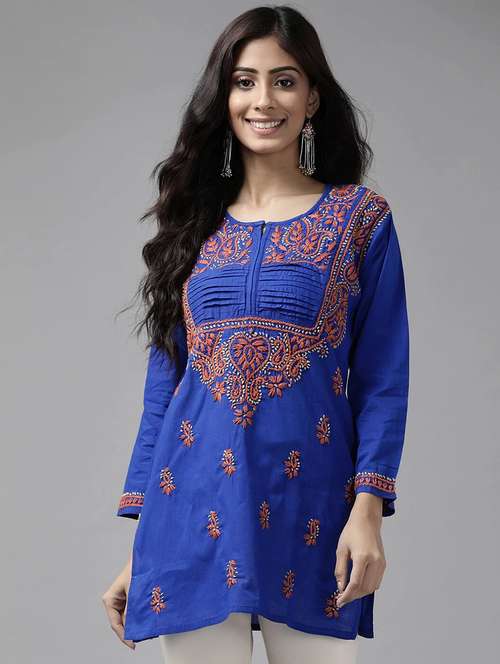 - » ada hand embroidered royal blue cotton chikankari kurti