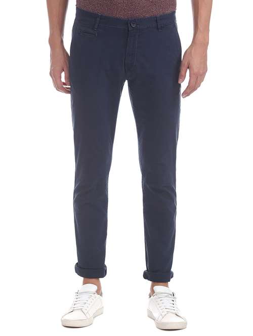 - » navy blue solid flat front trouser
