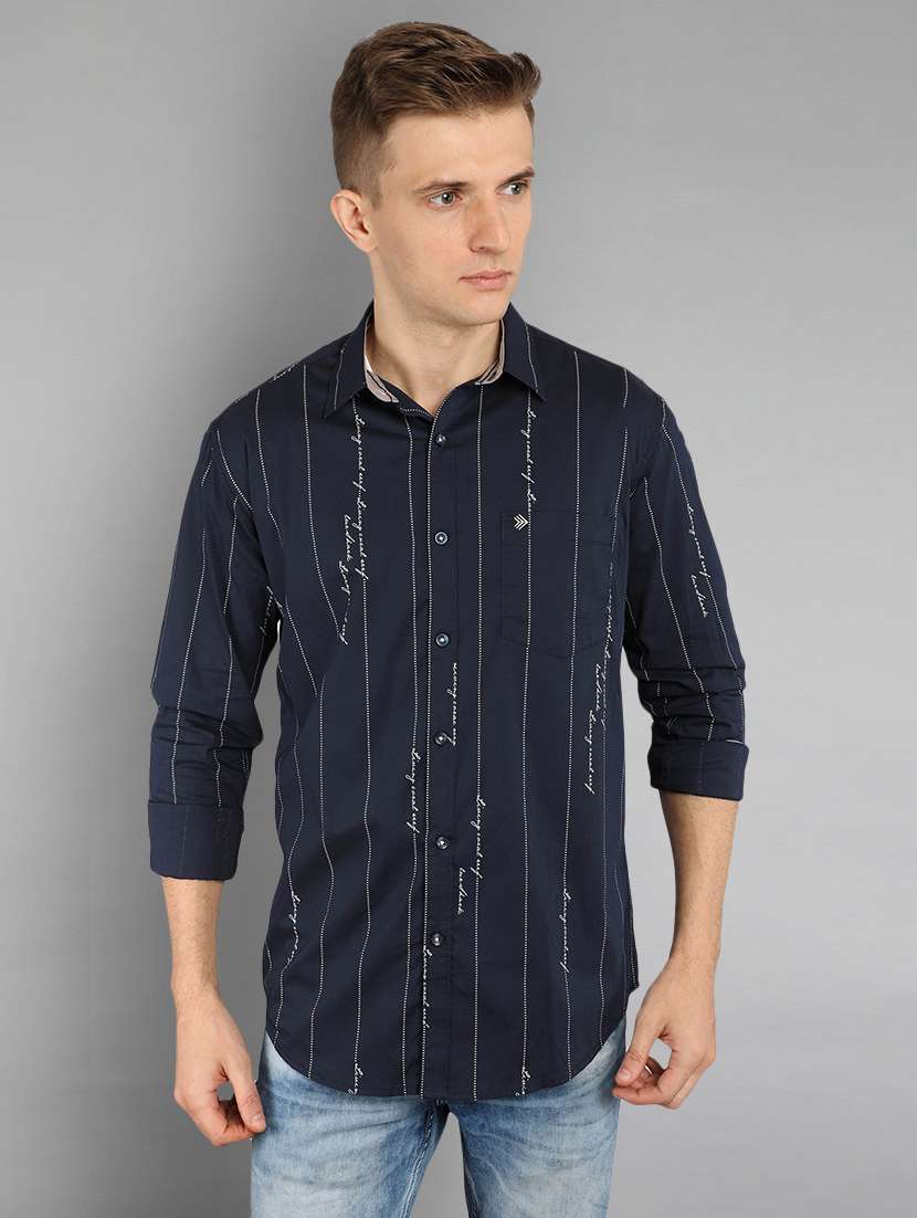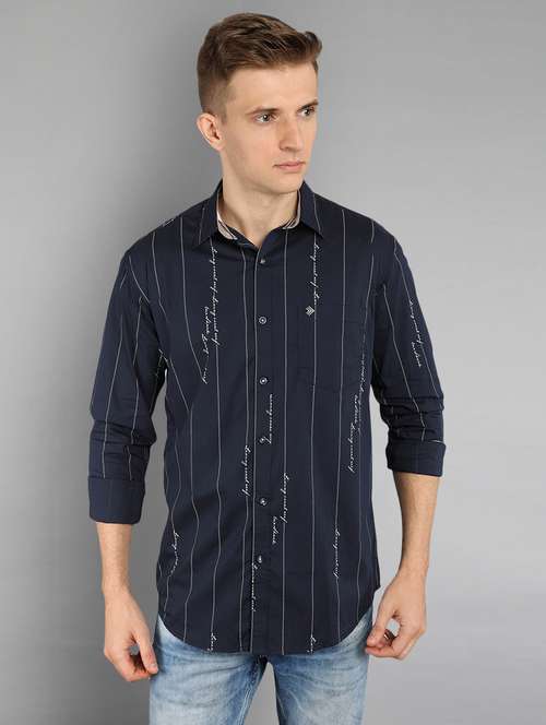 navy blue striped casual shirt
