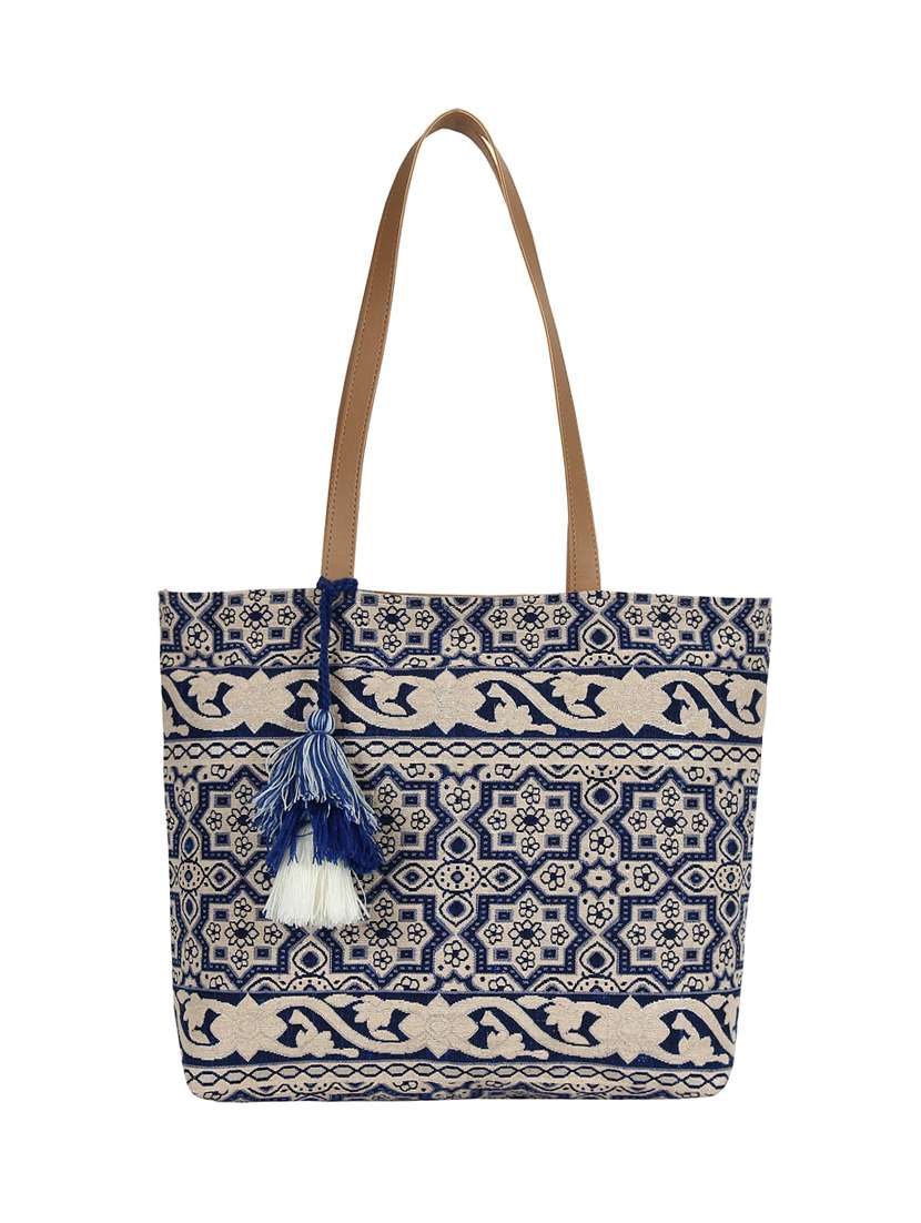 blue cotton handbag