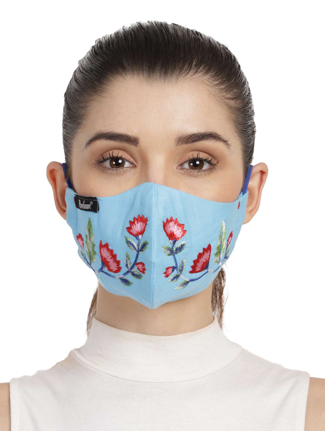 Fabric: Cotton Fabric with Floral Embroidery Work. Design to easily cover your nose & mouth effectively. 3-Layers help block dust particles & droplets. Wash easily and Reuse. Thin Elastic Strings for Extra comfort. Foldable, can be carried anywhere in your pocket or handpurse.
