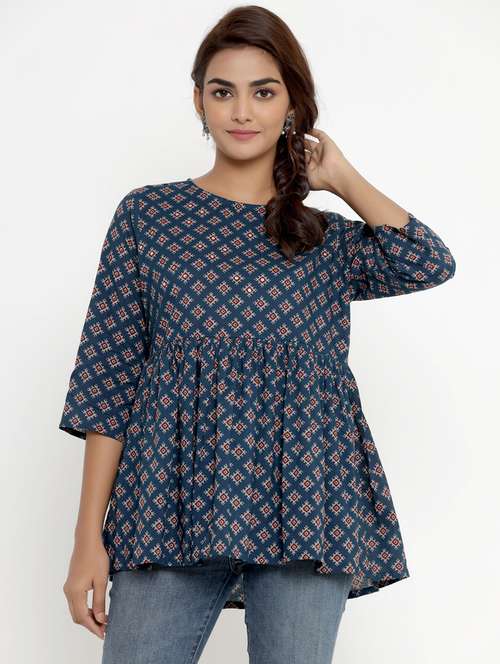 blue round neck printed tunic