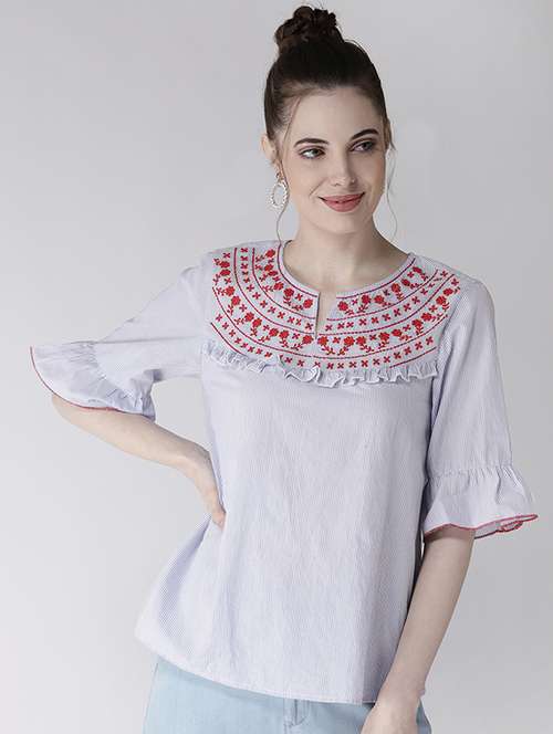 - » pin striped embroidered top