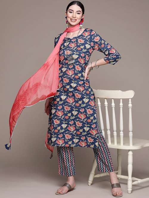 blue floral print kurta and pant set