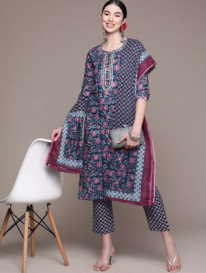 blue floral print kurta and pant set