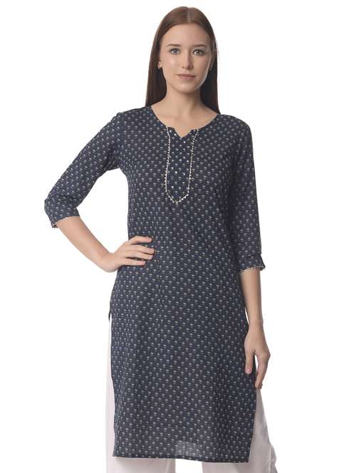 - Grab this beautiful kurta made up of cotton fabric featuring notch neck designs.