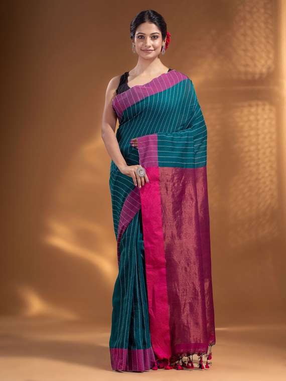 women's self design teal colored saree with blouse
