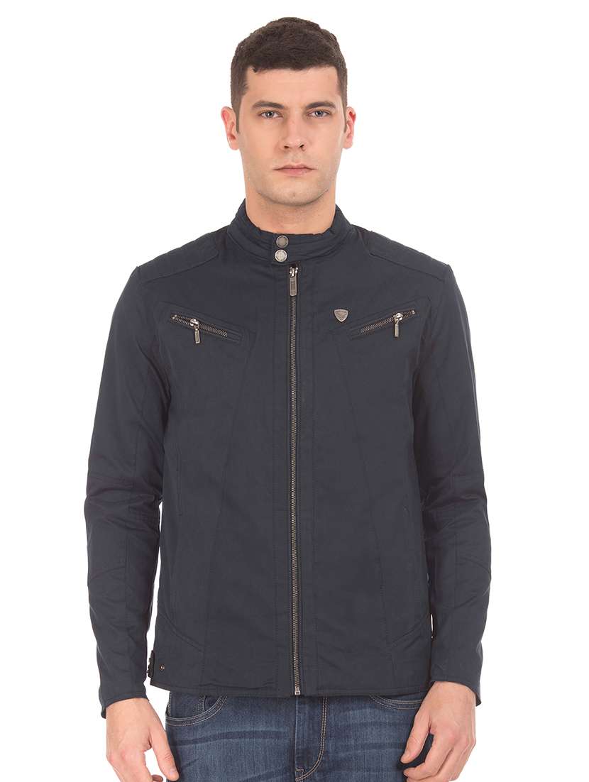 navy blue solid casual jacket