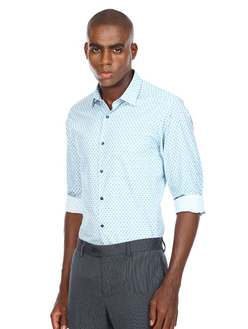 blue printed formal shirt