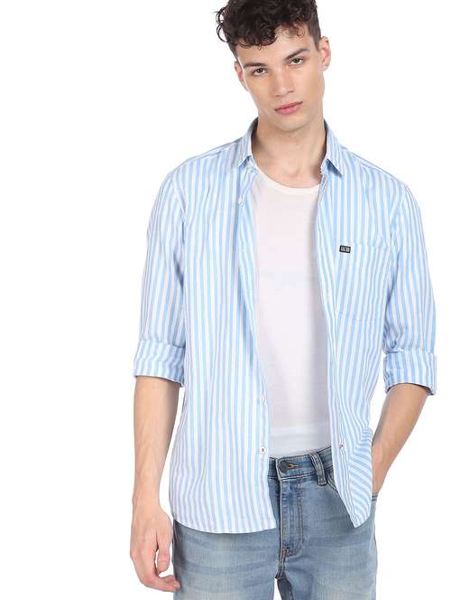 blue striped casual shirt