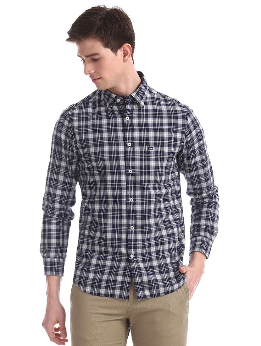navy blue checkered casual shirt