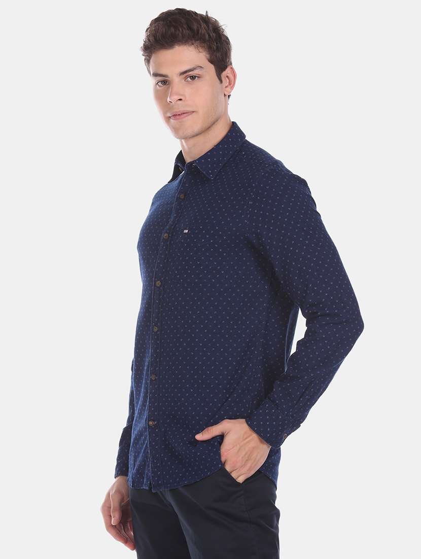 navy blue printed casual shirt