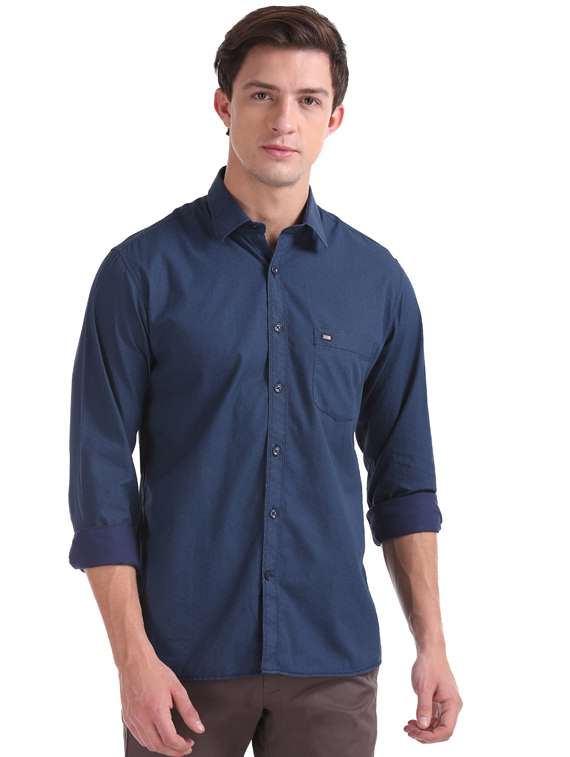 navy blue printed casual shirt
