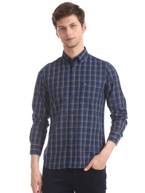 - » navy blue checkered casual shirt