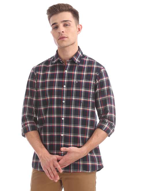 - » navy blue checkered casual shirt