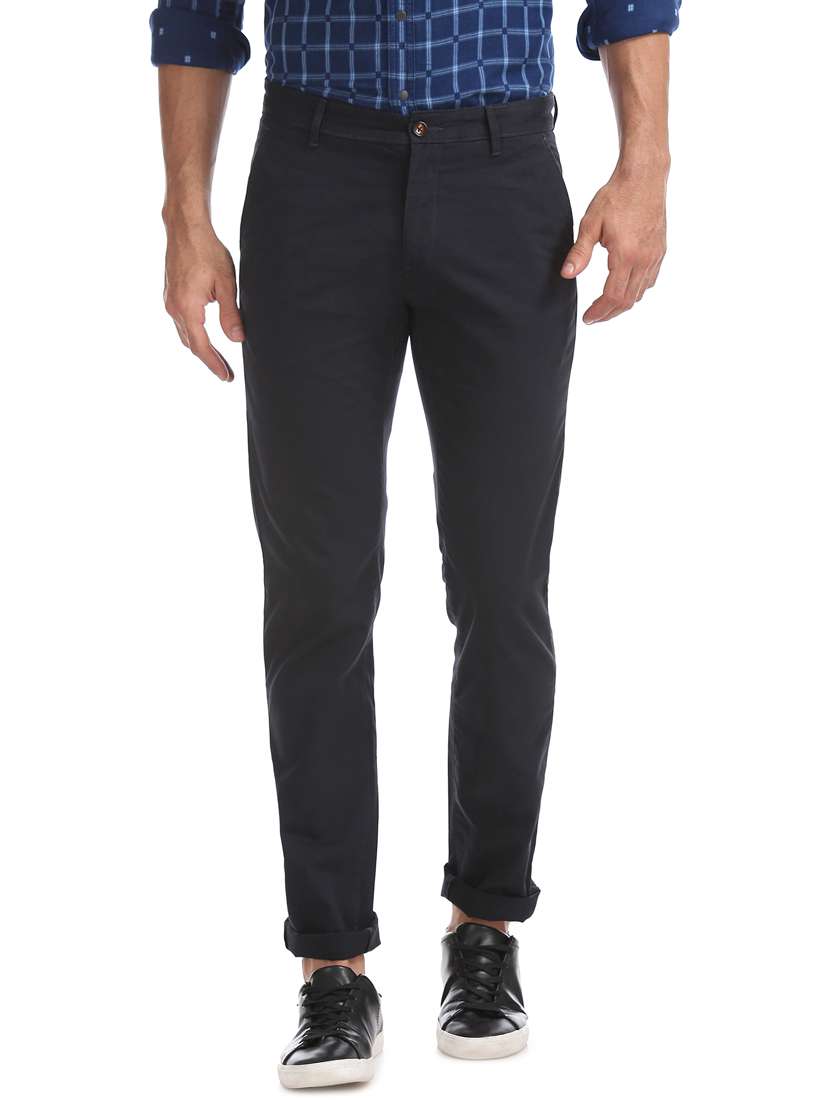 navy blue solid flat front casual trouser