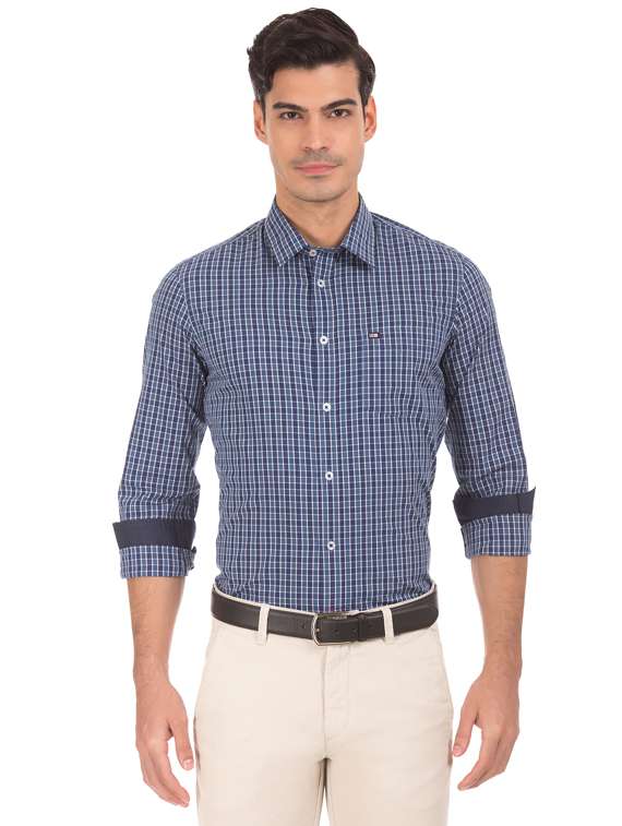 - » blue checkered casual shirt
