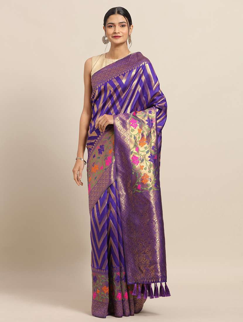 self design banarasi saree with blouse - 17289848 - Very Small Image - 1