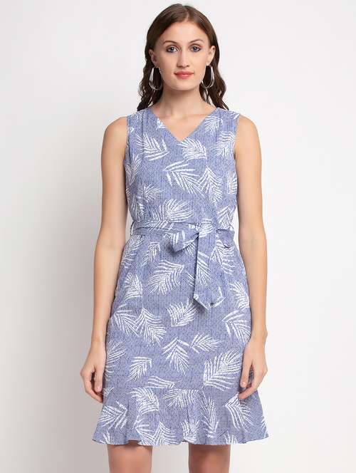 - » tie front printed a-line dress