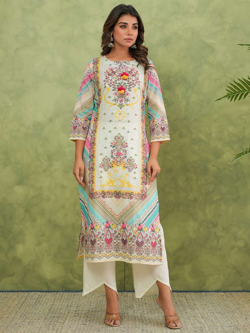 - » women printed three quarter sleeve kurta pant set